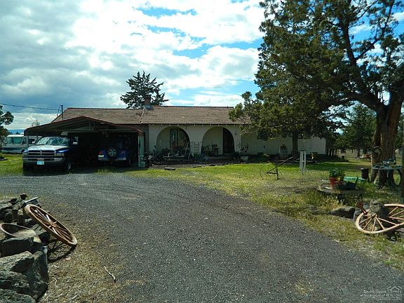 With great views of the Cascade Mountains, this 1,274 sf, 3 bedroom, 2 bath single story home is located on 15.4 acres which could be subdivided into (3) 5 acre parcels (buyer to verify with Crook County); kitchen with solid hickory cabinets, tile floors; living room with brick wood fireplace; 2 car attached garage (partially converted into storage area); covered metal 2 bay carport; tile roof; heat pump; circular driveway, lots of room for extra parking; 2 outside storage buildings; great horse property.