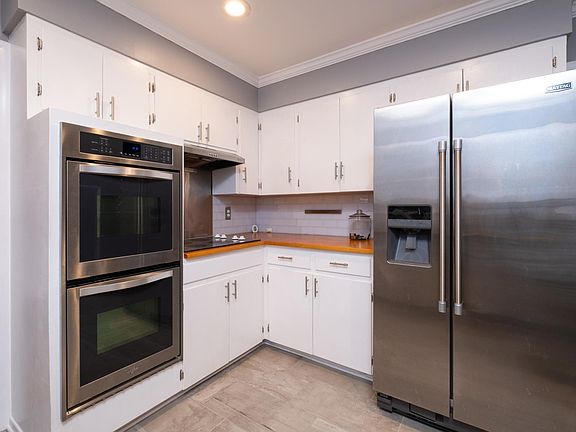 Wall-mounted gas heaterRecently remodeled wood flooringNew water heaterWooden chopping block countertops