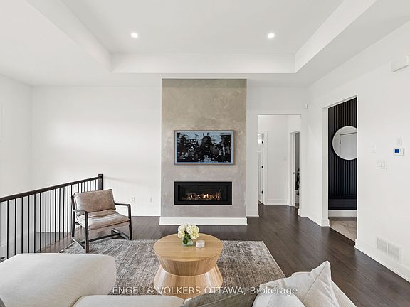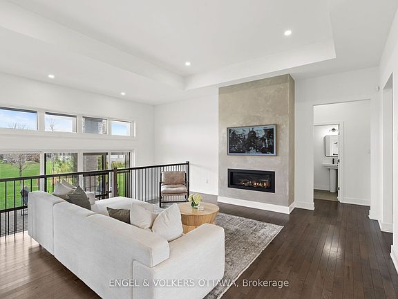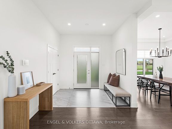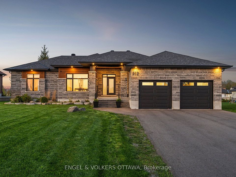 Welcome to 312 Shoreway Drive, an impeccably crafted bungalow nestled in the exclusive Lakewood Trails enclave of Greely. Built by custom home builder Mackie Homes, this Briard model offers over 2,180 sq.ft. of refined living space, designed to exceed modern luxury standards while embracing timeless elegance. From the moment you enter, you're greeted by a flowing open-concept layout and designer-selected finishes that elevate every space. The gourmet kitchen is a showpiece outfitted with bespoke cabinetry adorned with crown moulding, quartz surfaces, a grand centre island with seating, and a walk-in pantry seamlessly connecting to a sunlit breakfast area and impressive great room. Soaring ceilings, a striking gas fireplace with full-height feature wall, and a wall of windows create an atmosphere of both warmth and grandeur. Step through oversized patio doors to your covered deck and expansive backyard the perfect backdrop for elegant outdoor entertaining.The primary suite offers a walk-in closet and a spa-inspired ensuite featuring a freestanding soaker tub, glass-enclosed shower, and his-and-hers vanities, all designed with a refined palette and high-end materials.Two additional bedrooms, each with walk-in closets, share a thoughtfully designed Jack-and-Jill bathroom, ideal for guests or family. The partially finished lower level recreation room offers additional space to relax, entertain, or create a private home theatre or fitness retreat. Lots of potential for an accessory unit or in-law suite with garage access to the basement and rough in for a bathroom. Reach out today to experience quiet luxury in one of Greelys most sought-after communities.