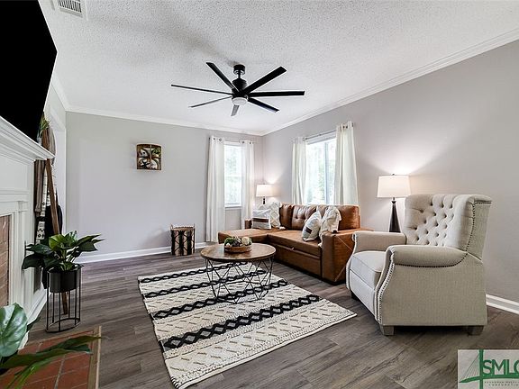 Welcome to 312 Turnberry Street, a charming 3-bedroom, 2-bathroom residence offering 1,580 SqFt of well-appointed living space and a detached 2-car garage. Upon entering, you’ll find a formal living room featuring a cozy fireplace. The kitchen is a standout, boasting a large peninsula with marble countertops, white shaker cabinetry, & stainless steel appliances. Perfect for entertaining, the kitchen flows seamlessly into the expansive family room, which is adorned with a charming bay window. A huge side porch connects to both the mudroom/laundry area & the kitchen. The roof, HVAC, windows, & LVP flooring are all less than two years old! Currently serving as a highly profitable investment property with an impressive annual income. With furnishings being negotiable, this home could be an effortless addition to your portfolio or a move-in ready primary residence. Located on a quiet street with easy access to the GA Ports, SAV/HH Airport, and just 15 minutes from Downtown Savannah.