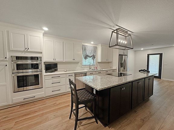 Newly Remodeled & Move-In Ready! Step inside this beautifully updated 4-bedroom, 2.5-bath home that truly feels brand new! Almost everything has been redone, including new flooring, fresh paint, stylish lighting, modern wiring and plumbing, new HVAC, and so much more. The heart of the home is the dream kitchen, boasting a massive island with built-in cooktop, double ovens, granite countertops, soft-close cabinets, and brand new appliances. The spacious master suite features its own private bath with a shower, while the additional bedrooms offer comfortable space and closets. There's also a small, convenient laundry room. Downstairs, you'll find a full unfinished basement with a half bath, providing endless potential for extra living space, a workshop, or storage. Enjoy the convenience of an attached 2-car garage plus a detached garage/shed for even more storage. Nestled on a nice lot in town, this home offers great front and backyard space to enjoy outdoor living. Truly a must-see!