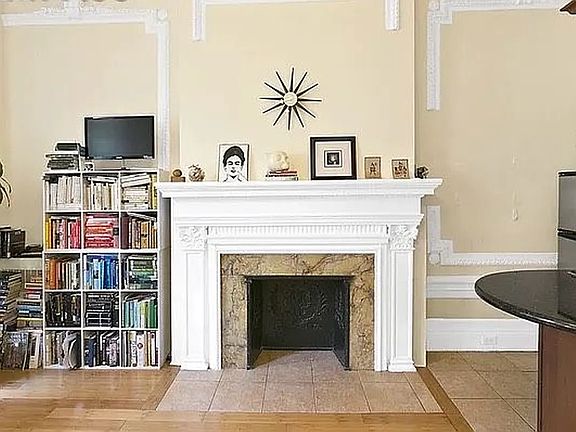 Classic brownstone eleganceRenovated spacious bathroomStainless steel appliancesPrivate balconyHandcrafted decorative fireplaceOrnate custom moldingsGranite countertops