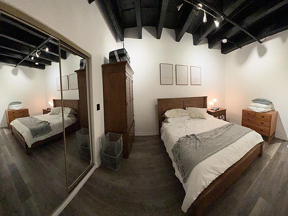 This newly renovated, gorgeous, and spacious 940 square foot condominium unit is located at the heart of Downtown Los Angeles near public transportation via bus and train, hospitals, restaurants, the Staples Center, Walt Disney Concert Hall, the Museum of Contemporary Art, and the new Apple flagship store. This beautiful condominium is freshly painted, has a newly renovated elegant bathroom fitted with Rainfall Shower system, renovated kitchen with a quartz countertop and backsplash, new washer and dryer, new dishwasher, full-size refrigerator, stove, oven, microwave, a Keurig coffee maker. The bedroom is furnished with Ethan Allen queen size bed, side table, and armoire. The living area has an open floor plan and features a living area with a new 55-inch TV, a New York style counter table by Crate and Barrel with swivel bar chairs, an office nook for remote working. There is a second sleeping area that has a new daybed with a Full mattress and a pull-out trundle bed with a single mattress for the occasional guest. Wi-Fi is provided for free as part of the rent. Enjoy the street market just across the street on Sundays, downtown LA nightlife, the convenience of walking to international restaurants or simply enjoy a swim in the rooftop pool. Parking $300 per month located underground inside the building. 30-day minimum. Fully furnished. Utilities included in monthly rent. In-Unit W/D. Parking available for $300 per month. Application Fee - $50.00 Cleaning Fee - $175.00 Deposit (Refundable) - $1,500.00