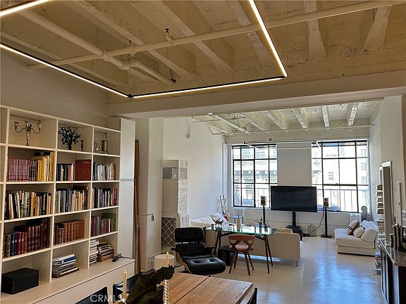 Modern urban oasis in the bustling heart of Los Angeles. This chic one-bedroom, one-bathroom condo showcases an open-concept design with sleek floors and large windows that fill the space with natural light. A striking feature is the expansive ceiling-to-floor built-in bookcase to the left as you walk in. The contemporary kitchen features stainless steel appliances, granite countertops, and plenty of cabinet space. Spanning 960 square feet, this spacious loft provides a peaceful escape while you're inside with the option to soak in city life. Enjoy luxury amenities such as a rooftop pool and jacuzzi, fitness center and 24-hour concierge service. Just steps away from top-tier dining, shopping, and entertainment, this residence epitomizes the best of city living.