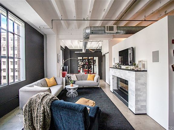 Enter this beautiful downtown building & be excited to look at a completely built out loft. Private elevator will take you to the 8th floor where you will find a wonderfully appointed home. As you enter, observe the very high ceilings prevalent in a downtown loft. Rare square footage in this building & a corner unit make this unit bright & airy. Notice the long builtin that is well used as a book, storage & display case. The loft, just to the right of the entrance, is a wonderful guest room & features a custom staircase with lots of storage. Just under the loft, find an office for those of you that work remotely. The kitchen is custom with gorgeous storage cabinets, corian counters that look like quartz, stainless appliances, electric stove/oven, & a beautiful island complete with breakfast bar. Love the space for the dining table, perfect for entertaining! Enter the living room & notice the "CitiQuiet" soundproof windows making this home both bright & quiet. A convenient sill between the original window & the soundproof window! The living room is very large & boasts a cozy electric fireplace. An extra space for an additional work space in this large room. Nice size bathroom which includes an all in one washer/dryer. The bedroom is bright, large & storage abounds. Concrete floors throughout making throw rugs a great accessory to your taste. Rooftop pool with a view & workout room too! Parking is available. One of the largest 1 bedrooms in the building!