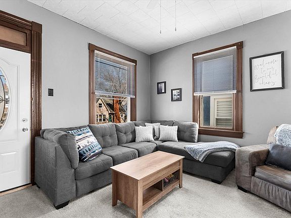 Charming 3-Bedroom Home on an Oversized Lot! This beautifully updated 3-bedroom, 1-bath home sits on an extra-large lot and features a detached garage. Inside, you'll find tall ceilings and a stunning pocket door that separates the living and dining rooms. The modernized kitchen boasts sleek countertops, newer white cabinetry, a pantry, and stainless steel appliances—all of which stay. The stackable washer and dryer are included as well! The main-level bedroom offers a spacious closet, while two additional bedrooms upstairs provide ample closet space and individual window A/C units for personalized comfort. Enjoy the expansive backyard and large patio—perfect for entertaining. Don't miss this opportunity to make this charming home yours!