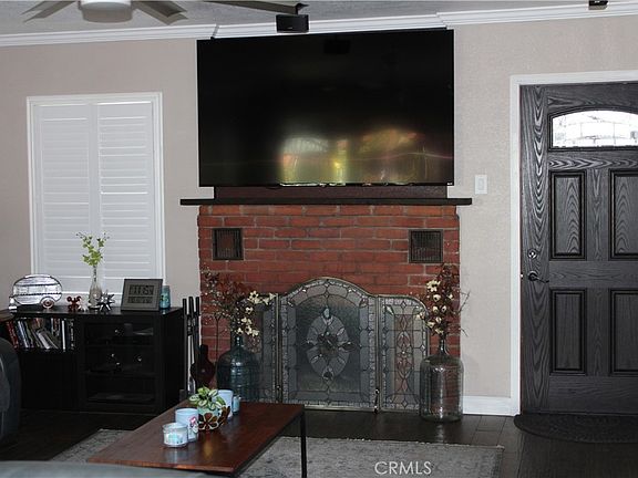 Enjoy two fireplaces—one in the living room and another in the spacious entertainment room. The entertainment room also opens through a sliding glass door to a beautifully maintained yard.