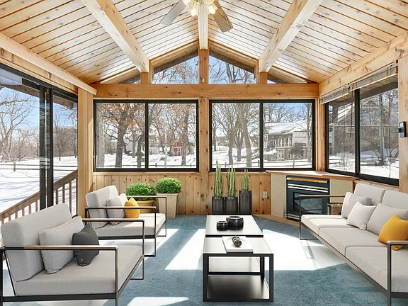 carpeting in living room), 3 bedrooms on the main level, a vaulted 4-season room with fireplace off the back overlooking the level back yard with lake views, a lower level with large rec room, workshop, and a garage with additional storage room off the back. You'll love the close proximity to the lake with the ability to kayak/canoe through the channel into the lake. New electrical panel 2023, well professionally sealed 2023, new carpeting in LL BR, fresh paint, and some new kitchen/bathroom flooring. Convenient location close to everything! Some photos have been virtually staged.