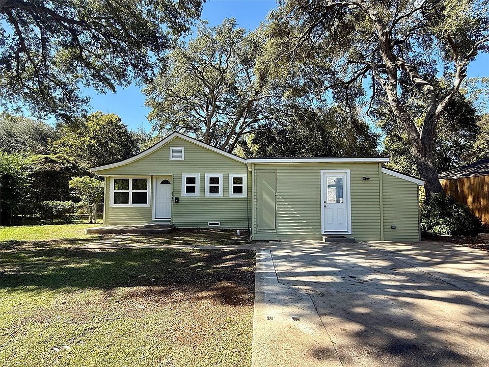 This charming home has been beautifully updated and sits on a spacious double lot! The interior is bright and inviting, featuring original hardwood floors in parts of the home. The kitchen steals the show here with white cabinets, granite countertops, and stainless-steel appliances. It overlooks the living room with the dining area conveniently nearby. The living room has a wall of built-in cabinets for extra storage. There are two full bathrooms. The oversized primary suite includes a walk-in closet and access to the covered patio. The shaded, fenced yard adds to the appeal & would be a nice place to relax with your choice of beverage. New lighting & plumbing fixtures throughout. The home also has a new roof, stunning new windows, all-new HVAC, and updated water lines and drains. Current survey on file too!