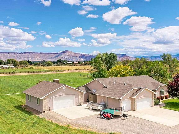 RARE FIND! Absolutely immaculate four-bedroom home on nearly four irrigated acres with unparalleled views of the Grand Mesa, Mount Garfield and the National Monument! This home is the pinnacle of ownership pride with details and upgrades throughout that are well beyond common. High-end HVAC system and plumbing upgrades with high efficiency gas furnace and heat pump condensing unit are all meticulously installed. Detached shop is heated and cooled! House and garage attic have power ventilation. Beautiful accent painting and finishing touches throughout. Irrigation equipment and meticulously crafted sprinkler system included along with custom cabinetry and air compressors in both garages! Also provided is custom built storage shed. Property INCLUDES irrigation water rights. This amazing home has country living feel with access to western Colorado's amenities just moments away.