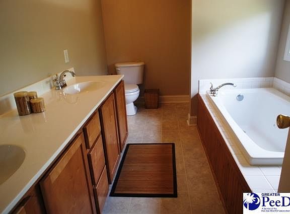 Beautiful country home features an eat-in kitchen with island, complete with appliances, leading to French doors overlooking a large, fenced in back yard with an in-ground swimming pool. Back deck and front porch have low maintenance, durable vinyl railing/posts. Interior freshly painted. Large laundry/storage off of kitchen. Spacious family room with new laminate flooring as well as in master bedroom which includes a separate bath with a double vanity, jetted tub, and separate shower and a large closet.