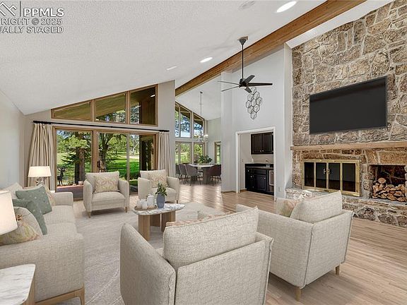 *** KISSING CAMELS GATED, BACKS TO THE GOLF COURSE GREEN #3 *** Views of the Mountains & Pikes Peak, Ranch plan Townhome with all Main level living, Private Courtyard to Entry, High Vaulted Ceilings, Oak Hardwood floors, full wall Stone Fireplace, transom windows in Great room & Dining room, Recessed wet bar, bright Kitchen with skylight, white cabinets, double ovens, quartz island, cozy breakfast room with windows overlooking the golf course & mountains, Vaulted Primary Bedroom, 5-piece Bath, 2 walk-in closets with Elfa closet system, addition Bedroom with ensuite Bath, 2 Elfa closets, convenient Office / Den with large bright skylight, Full guest Bath & Laundry, covered brick patio & yard area great for entertaining, downstairs is perfect for family & friends with large Family & Rec rooms, all new LVT flooring, paint & LED lighting, 2 large Bedrooms both with ensuite Baths, Craft / Media room, tiled bar area with Ice maker, Sauna, tiered window well with egress, Oversized 2-Car finished Garage, great storage, Live Life & enjoy this gated, secure community, close & easy access to Garden of the Gods, shopping, etc. with the HOA taking care of landscaping, etc.