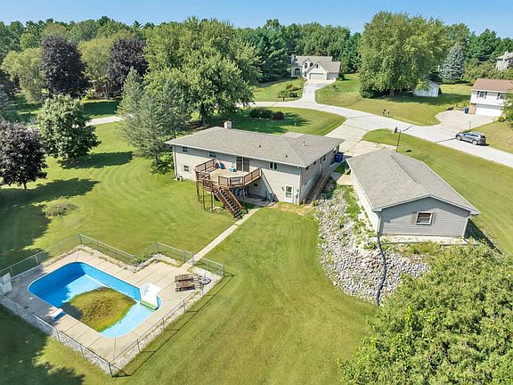 Check out this 4 bedroom 3 bath home located on 1+ acres. Updates galore every corner you turn. Large kitchen/dinette area w/ painted cabinets, updated flooring, lighting and paint. Locker area off garage. Spacious living room with large picture window offering natural light. 3 bedrooms on main level and 2 full baths on main level. Entertain in the lower level which offers a bar, wood fireplace, 4th bedroom and full bath or walk out to the beautiful backyard and enjoy the in-ground pool. Extra 24x44 detached garage for all of those toys. Please allow 48 hours for binding acceptance.