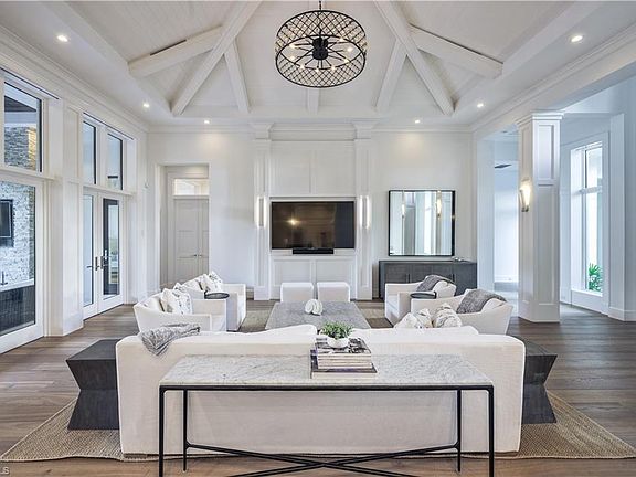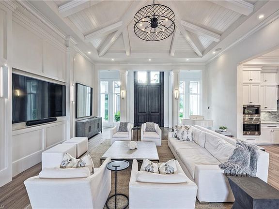 Exquisite residence is now available in the sought after community of the Moorings. This spectacular 5 bedroom 5.5 bath residence features a chef's kitchen with ample storage, built in pantry, oversized island with bar seating, and gorgeous countertops. Modern design & decor can be found throughout including high ceilings, gorgeous wood flooring, and unique architectural accents. The master retreat features custom closets & spa like bathroom ideal for relaxation. The well laid out floor plan allows easy access from the interior living space to the impressive outdoor living area, which capitalizes on beautiful views of the voluminous wood ceilings, captivating fireplace, and inviting pool and spa. All of this, just moments away from the vibrant downtown Naples, renowned shopping, gourmet dining, and pristine white-sand beaches.