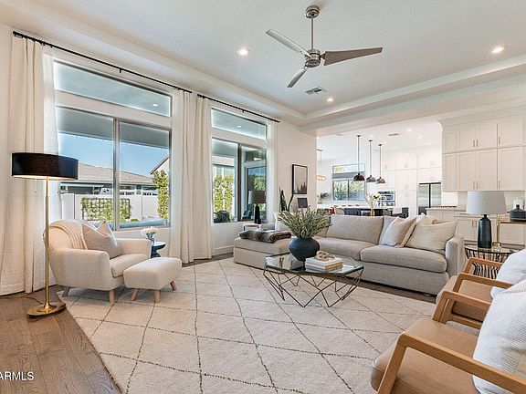 Welcome Home to this beautiful property & Complete Transformation! Situated in the sought after Morrison Ranch this newer Home is a must see! The amazing Floorplan will have you in awe, with over 3800 livable sqft, open & spacious areas, 4 large bedrooms, 3.5 baths, large Bonus room & 2 office spaces that can be used for gym, flex or study space. This Home offers an inviting entry area & stand out Curb appeal. So many amenities & features from top to bottom including 11' high ceilings, upgraded Flooring throughout, New lighting & fixtures, new exterior and interior paint, New custom Steel doors, New window shades, Huge laundry room & more! This Stunning Kitchen is the place to entertain with Dining area & huge Great Room adjacent with fireplace! Soaring custom Cabinetry with a Large Island, offering so much cabinetry and countertop spaces! Designer finishes with Quartz Counters & Hardware, 36 in. Gas stove, wall oven & oversized walk-in Pantry! Don't forget the Primary bedroom & luxurious bathroom with his/hers spaces, free-standing soaking tub & large walk in Closet. Enjoy all the Views from the Primary room, Family room & Kitchen of the serene Backyard setup for a complete relaxation experience. Spacious patio areas, new Travertine finishes, new Synthetic turf & large Modern pool to cool off! Professionally designed & installed with mature landscaping, Putting green & Hot tub! Gutter system, Misters, & Landscape lighting add to this Complete backyard! EV hookup & 3 car garage! ENERGY STAR ''Platinum Standard'' and "Powerhouse Green" for remarkable comfort, energy efficiency and environmental sustainability! And In the wonderful Town of Gilbert with award winning Schools close-by! This Home stands out and is a Must see!