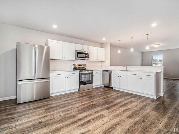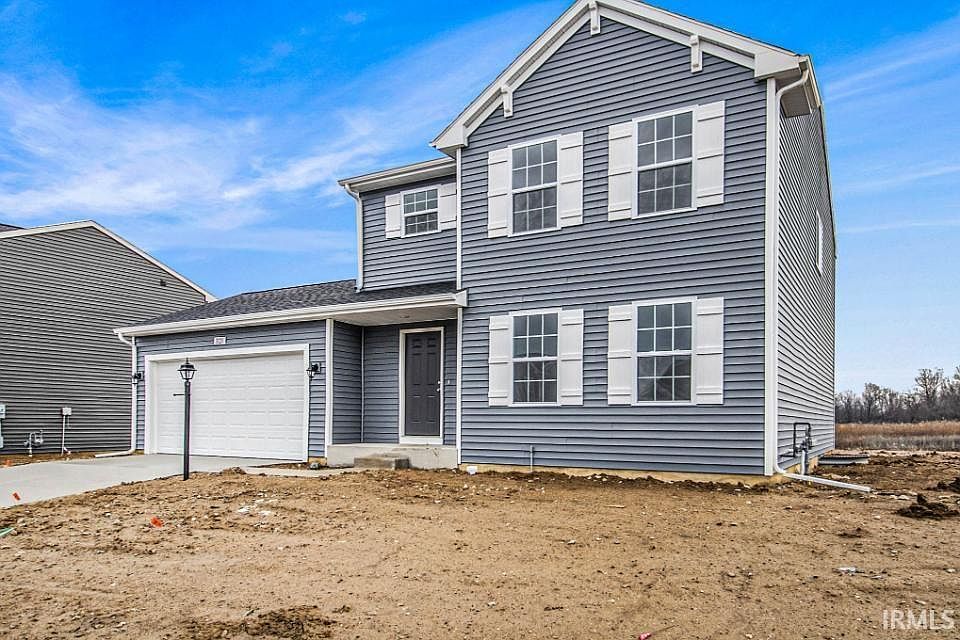 New construction home in Autumn Ridge, located in Penn-Harris-Madison school corp, ready in 15 days. Over 30 years newer than other similarly priced homes in the area. RESNET energy smart construction will save owner over $1000 yearly plus home has 10-year structural warranty! Over 1800 sqft of living space on 2 levels blends function with style. The main floor has vinyl flooring throughout and features a large great room, spacious kitchen with white cabinets, quartz counters accented by subway tile backsplash and breakfast bar with pendant lighting above. Appliances include stainless steel range, micro hood, dishwasher & refrigerator. The eat-in kitchen has a dedicated dining nook with slider doors leading to a 10x10 patio. The first floor is also equipped with a mudroom, laundry room with washer & dryer included, plus a stylish powder bath. Upper level boasts a primary suite complete with WIC and private bath, 3 spacious bedrooms and an additional full bath. Home also has attached 2 car garage with openers and keypad entry, covered front porch entry.