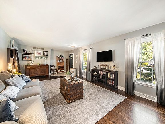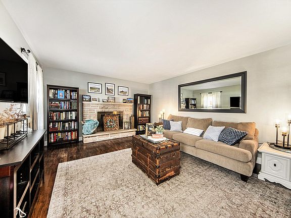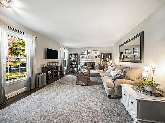 Welcome home to this spacious ranch, perfectly situated on a corner lot in a desirable neighborhood great for walking and biking! Conveniently located near schools with easy access to major highways. This home offers comfort, functionality, and modern updates throughout. Enjoy a bright living room with a cozy fireplace, an open kitchen and dining area with built-in bench seating, and a large family room perfect for gatherings. The split floor plan provides privacy, and the finished basement adds extra space for recreation or entertaining. Features include hardwood and ceramic tile floors, a half bath with laundry on the main level, and a primary suite with a ceramic walk-in shower. Outside offers a stamped/stained concrete patio, fenced yard, and half-court basketball area. Updates include new baths, electric panel wired for a generator (2024), shingles (2017), A/C, water heater, and softener. You'll love the zoned heating and stainless appliances.