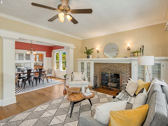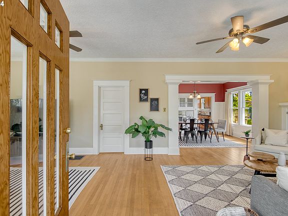 Three Generations have lived in this Remodeled and Renovated Craftsman Bungalow. This family has touched every surface with years of care and detailed attention to improvements. The NE Neighborhood, called Fremont/Beaumont, is recognized for its community feel, towering mature street trees, strolling sidewalks, shops, bistros, and brasseries. This property continues to be served by Alameda Grade School, Beaumont Middle, and Grant High School. Built in 1915-4 Bedrooms & 2 baths-2448 square feet. *From the covered porch, which spans the entire width of this home, the front door opens into a 30 x 13-foot living room with an original wood-burning fireplace, mantle, tiled hearth, and craftsman built-ins with lead panes; opposite this is an additional sitting area with nine-foot ceilings, and a classic oversized picture window for dreamy natural light or your baby grand piano. *Wainscoting, Wood Built-Ins, Curio Display Space has vintage Glass-Paneled Doors, Crown Molding, Period Fixtures, and room for your next gathering of twelve plus. This dining room is formal, spacious, and dressed in a rich, NW color pallet enhanced with oak hardwood floors. *The kitchen is remodeled with rich Granite Countertops, SS Appliances, a Double Sink, New Cabinetry, High Ceilings, MORE Oak Hardwood Flooring, and Abundant Storage! *If you're looking for a sanctuary, there is a 19 x 11 bonus room off the kitchen. The room is large enough for a sitting or TV area and an additional table for crafts, work, or game night. Many windows, a skylight, and a set of French doors bring the daylight indoors. A dedicated long driveway and single-car garage open to the backyard TREX deck, large enough for your BBQ and potted plants. *The remodeled basement and utility room have a private rear entrance. We’ve staged one room as a media area, but this space could also hold a home office, Zen space, or a possible ADU. Another bedroom and full bathroom on this lower level too! [Home Energy Score = 4. HES Report at https://rpt.greenbuildingregistry.com/hes/OR10232721]