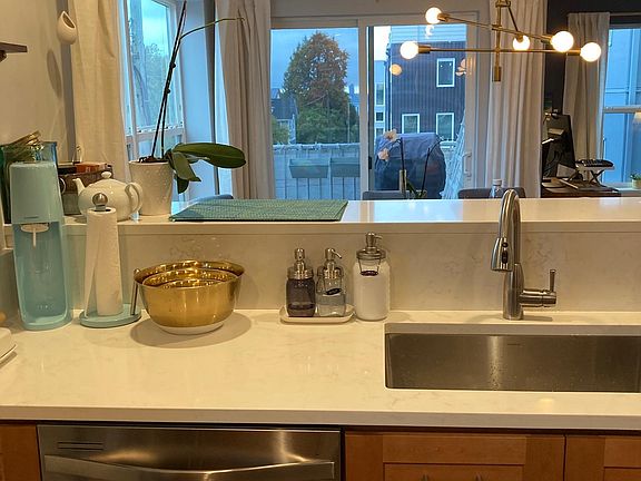 FURNISHED 1kSF+ 2 bedroom, 2 bathroom, completely remodeled, secure West Seattle condo. This bright, beautiful space has plenty of room and a small view of Elliot Bay and downtown. Garage parking included. It is walking distance to 4 grocery stores, the Junction, super close to a brewery, bar, a diner, a golf course, and 21 coffee places.