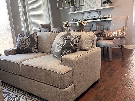 Welcome to the highly sought-after gated community of Willowalk! This stunning two-story home features 5 bedrooms and 3 bathrooms, offering comfort, functionality, and modern upgrades throughout. The first floor includes a bedroom and a full bathroom, along with recently upgraded flooring. The living room boasts a cozy fireplace and a built-in entertainment system, perfect for gatherings or quiet nights in.