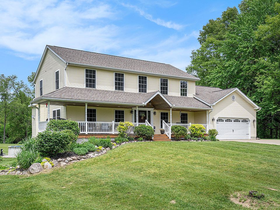 Amazing opportunity to own this beautiful Cooper Twp country home complete with privacy, wooded acreage, but still convenient to all the city amenities. This gorgeous 4 bedroom, 3 full bath home with over 3200 sq ft of living space on over 19 acres is located close to the highway, golf, Plainwell, Kalamazoo, & more. The seller has done multiple upgrades including new composite decking, new trim & interior doors, new flooring, refinished basement, upgraded electrical, new Generac generator, new garage door, & more. The home sits well off the road for a private feel & has an inviting front porch. The main floor has an open feel. The spacious living room has a stunning stone fireplace. The kitchen has granite counters, large walk in pantry, & a snack bar. The eating area has a slider to the deck. There is also a room that could easily be used as a formal dining room along with a full bath & laundry to round out this level. Upstairs contains the primary bedroom suite with a large attached bath & spacious walk-in closet. There are 3 more good sized bedrooms & a 2nd full bath. The walkout basement has more living space & plenty of storage. The backyard is amazing with a large deck, above ground pool, & a 1 mile walking loop in the woods with even more woods to enjoy! This property is stunning & one you don't want to miss out on!