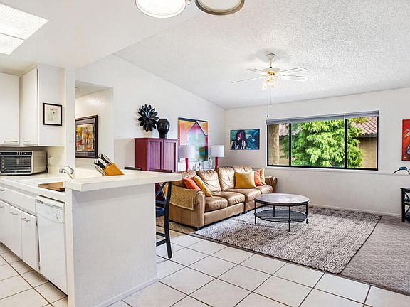Beautiful 3 bed, 2 bath condo located in the desirable Cathedral Springs community is being offered partially furnished and features a spacious floor plan with lots of natural light, tile floors, and in-unit laundry closet. The living room opens to the kitchen with dining area, breakfast bar, white cabinetry offering plenty of storage space and white appliances including the range, microwave, and dishwasher. All 3 bedrooms access the private balcony providing an abundance of natural light, and a fantastic space to relax or entertain guests - featuring courtyard/greenbelt views of the community! The large primary suite is located at the end of the hall and has a full-size private bathroom as well as a large walk-in closet. There is also a full-size hall bathroom for the 2 secondary bedrooms to share. Residents get to enjoy an array of community amenities including pools, tennis courts, and a rec room/meeting room, plus this community offers privacy with gate access. Ready for its next chapter, this home is the perfect place to create lasting memories!