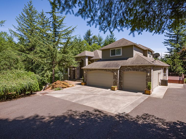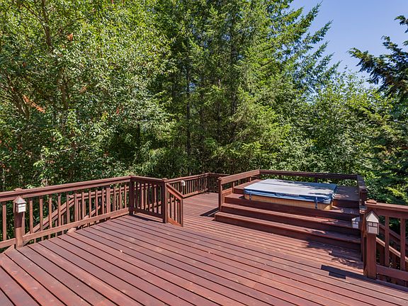5 Acres private wooded property with trails, RV & recreational vehicle parking. Detached 26 x 48 finished heated SHOP for hobbyist or multiple car storage w/ full bath. Rough-in unfinished space above for quest quarters/apartment. Main floor master. expansive deck & open Great room to chef's kitchen. Perfect for parties, BBQs & family gatherings. Lower level kitchenette, theater room. Wine Cellar.