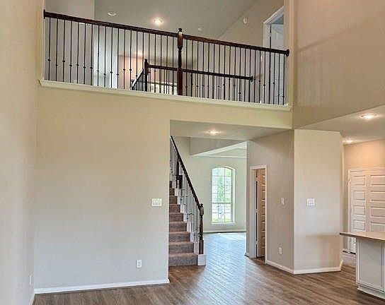 This beautiful stone/brick elevation home features an extended covered patio, formal dining, high ceilings, and an open island kitchen. Luxury vinyl plank floors flow through the main living areas. The upgraded glass-textured front door sets the tone, while the kitchen boasts stylish tile backsplash, stainless steel appliances with a matching 10” deep undermount sink, and a large Island. The spacious primary suite includes a bay window, high ceiling, spa-like bath with oversized shower, dual vanities, and walk-in closet. Enjoy a large game room upstairs and a full irrigation system on a prime corner lot!
