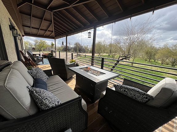 Main home: 3,200 square feet 4 bedroom, 3 bathrooms, split floor plan. All porcelain tile with no carpet anywhere, there are two huge master bedrooms upstairs both have on suite bathrooms and walk-in showers, tons of closet space with built in dressers. The master has a walkout large private deck with stunning views of black mountain to the north and McDowell mountains to the south. All bathrooms include high end fixtures, double rain shower heads and handhelds, large built in benches and premium materials used in construction. The downstairs has an additional two large bedrooms and a large shared bathroom with double vanities and a lovely bidet. All cabinetry has been upgraded to hardwood, soft close drawers and doors. The kitchen has a built-in pan rack, spice drawer, multiple lazy susan's and more storage than you can shake a stick at. New top of the line Bosch appliances, reverse osmosis water filter, pot filler above the stove. Living room has a large wine bar and electric fireplace. Extended two car garage, fenced garden with mature plants and room to grow your own! large fenced backyard for your animals. Separate grass Irrigation system with low maintenance Bermuda grass that stays partially shaded all day the entire year. Shaded 400 square foot front porch that runs the length of the home. This porch is a magical porch, it makes hours and drinks disappear, you will spend lots of time on this porch!