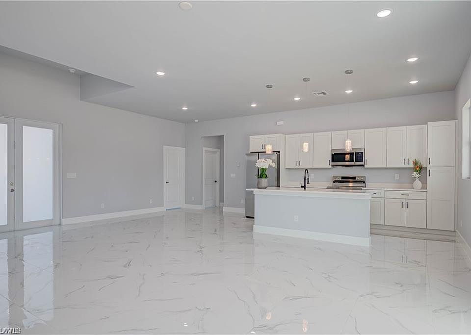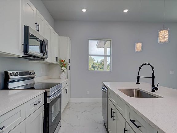 Enjoy the Florida lifestyle in this beautifully detailed, move-in ready new construction home! This property offers 3 bedrooms plus a den, 2 bathrooms, an open floor plan, and a double-car garage. Interior highlights include 24x24 tile flooring throughout, stainless steel appliances, quartz countertops, LED light fixtures, 10 ft ceilings, soft shaker cabinetry, and impact windows for enhanced safety and style. The laundry room is equipped with a Samsung washer and dryer . Built for comfort and durability, the home also includes a full sprinkler system to keep your lawn lush year-round. The open layout features a spacious living area, a deluxe kitchen, and a dining room, making it ideal for entertaining. The primary suite includes a large walk-in closet, dual vanities, and a walk-in shower. Located near SWFL International Airport, FGCU, shopping centers, and dining, this home offers easy access to all the best of Southwest Florida.