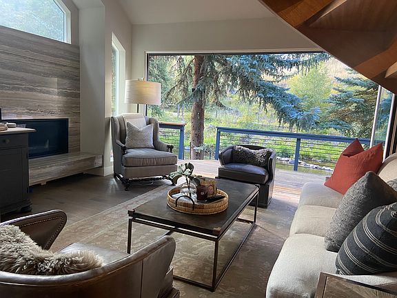 Private fully furnished home in West Vail with a yard, hot tub and expansive decks overlooking Gore Creek. 3 Bedrooms, 3 Baths, 1300 sq feet, newly remodeled with a linear gas fireplace, Kitchen-Aid appliances, and Panoramic accordion doors to the creek. Large yard and great outdoor spaces with wrap around decks, outdoor television and a hot tub overlooking the water. Currently set up with 2 queen bedrooms and a King. Furniture layout may be altered on request. New stackable washer dryer in upstairs master bath. Televisions in 2 bedrooms, living room and outdoor living space. Distributed audio system throughout interior and exterior spaces. Lutron lighting and Nest climate control throughout. No Smoking, Pets negotiable. Parking for 3 vehicles. Short walk to the free in-town bus.