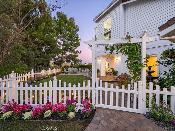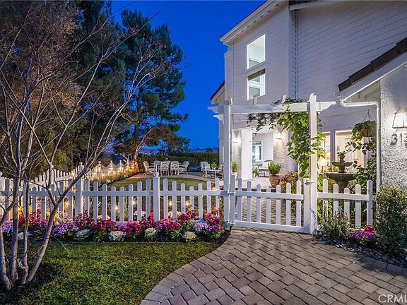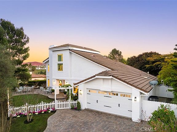 Wake up to stunning sunrises and unwind in the evening as the moon rises over the hills—this exceptional Coastal Beach Cottage offers a serene retreat with breathtaking views. Situated on a spacious 12,825 sq ft lot, with 4 bedrooms and 4 bathrooms, this recently remodeled property seamlessly blends modern elegance with timeless charm. A white picket fence adorns the front of the property as a garden arbor welcomes you into the large front yard with fountain and outside dining area with captivating views. You'll find thoughtfully updated features throughout, including new windows, air conditioning system with ERV and dehumidifier, freshly painted exterior, and new garage door. The interior shines with shiplap walls and ceilings, new chandeliers, and updated bathrooms. Expansive picture windows frame views of the hills, nature, and city lights, filling the home with natural light. The layout is both functional and luxurious, featuring two master suites. The main level includes 3 bedrooms, two with ensuite bathrooms including a primary bedroom suite with vaulted ceilings and sliding doors leading to your private patio. Upstairs, a luxurious master suite awaits with a marble fireplace, large windows capturing spectacular views, a sitting room, bonus area, and remodeled bathroom complete with dual sinks, soaking tub, shower stall, walk-in closet, and view balcony. The bright, remodeled kitchen is a chef’s dream, boasting top-of-the-line appliances, gas cooktop, quartz counters, center island with breakfast bar, pendant lighting, self-closing drawers, and water filtration system. Double French doors open to a large, flat backyard with plenty of room for a pool or ADU, perfect for entertaining or relaxing, complete with an additional dining area, firepit, and swim spa ready for connection. Additional features include inside laundry area tucked behind barn doors, wide plank oak flooring, a living room fireplace, and secret play area for children or additional storage. The garage boasts epoxy flooring, tankless water heater and high-quality built-in cabinetry, while the exterior is enhanced by attractive pavers on the driveway, walkways, and patios, surrounded by picturesque landscaping and mature trees. This Cape Cod style home is a rare gem, offering unparalleled character, charm, and functionality. Low HOA and No Mello Roos. Conveniently located near award-winning schools, shopping, and restaurants, it’s a must-see to fully appreciate its beauty and potential.