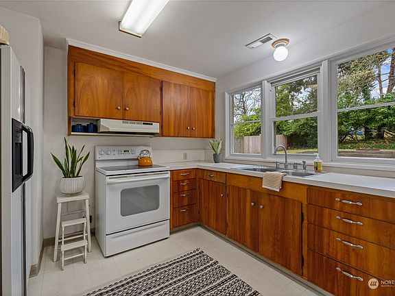 Nice little rambler in a great neighborhood! This tidy 2 bedroom/1 full bath home built on a 8,280 sq ft lot definitely offers room for expansion. Newer gas furnace with a/c to keep you comfy all year long & the composition roof is only 6 years old. Huge western facing living room window allows for fantastic natural light & most windows have been upgraded to vinyl. The hardwood floors in the living room & both bedrooms could easily be brought back to their former beauty. The dining room is right off of the kitchen and access to the huge backyard deck is perfect for BBQ's. Walking distance to UP Primary. Close to Trader Joe's & Whole Foods as well as shopping, dining, services and Chambers Bay Park.
