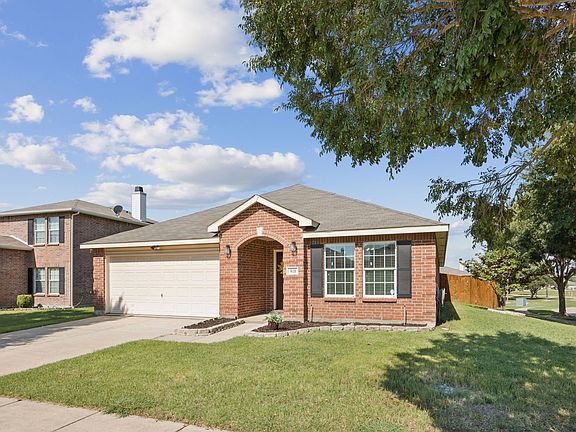 Welcome to this well-maintained single-story home, perfectly situated on a large corner lot in a vibrant, amenity-filled community. From the moment you arrive, you'll appreciate the inviting curb appeal and thoughtful layout designed for comfort and functionality. This 3 bedroom, 2 bath home features a versatile office that can easily be used as a 4th bedroom. The formal dining and living areas offer plenty of space to entertain, while the cozy family room features a classic wood-burning brick fireplace. The heart of the home is the spacious kitchen, boasting an abundance of cabinetry, ample counter space, and room to move—perfect for the home chef or gatherings with loved ones. The large primary suite includes an ensuite bathroom located at the back of the home, providing comfort and privacy. Your backyard oasis awaits! Step outside to a spacious 12' x 27' custom covered patio—perfect for year-round entertaining, weekend barbecues, or simply unwinding while overlooking the lush, grassy yard and mature shade trees. A 10' x 12' Tuff Shed adds convenient storage for all your outdoor gear. Adjacent to your backyard, enjoy resort-style community amenities including a pool, park, sand volleyball, basketball court, and more. The perfect blend of relaxation, recreation, and neighborhood charm! Zoned to the highly rated Denton ISD, you will love the convenience of having the elementary, middle and Guyer High School all within a 5 minute drive. Several updates include new fence, new carpet, interior paint, dishwasher and microwave, front door, reconditioned sprinkler heads, additional insulation in the attic to help with electric bills. Roof replaced 2017, AC replaced 2019 with 4 ton system and programmable app. Water heater replaced in June 2023, also with programmable app. You will love the whole house water softener and reverse osmosis water. Don't forget to check out the custom shelving in all closets, panty and laundry room. Washer and dryer convey with the property!