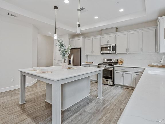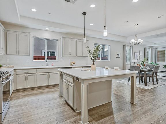 Welcome to 3121 Muse Way in Fairfield - a beautiful maintained single-story home offering 4 spacious bedrooms, 3 full bathrooms and 2105 sq. ft. of modern living space. Built in 2019 with durable tile roof. This home blends comfort and style throughout. Step inside to find brand new carpet in all bedrooms, custom drapes and elegant window shutters in primary bedroom, front room and living room. The open concept kitchen features upgraded cabinetry and a gas stove, seamlessly flowing into the inviting living area complete with custom-built shelving. The primary suite boasts dual sinks, a walking closet and plenty of natural light. Convenient features include a laundry room with built-in sink and covered patio perfect for relaxing or entertaining outdoors. Move-in ready and thoughtfully upgraded - this home is a must-see!