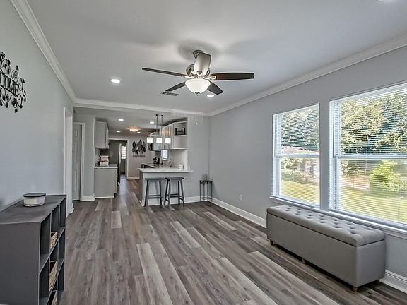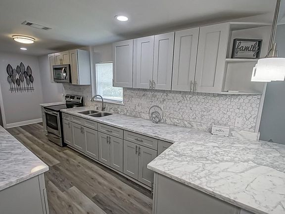 Step into this stunning renovation featuring 3 bedrooms and 2 full baths, including a spacious primary en suite with a custom walk-in closet. Designed for both comfort and style, this home boasts vinyl waterproof plank flooring, recessed lighting, and an open floor plan nice for modern living, comfort and entertaining. The gourmet kitchen is equipped with marble countertops, an abundance of cabinets, stainless steel appliances. Bonus room can be a walk-in pantry or office space—sweet for today’s lifestyle. A laundry room with washer and dryer included adds extra convenience. Enjoy the outdoors on an oversized deep lot with a privacy fence, offering plenty of room for entertaining, gardening, or relaxation. Additional updates include a new roof, beautiful esthetics and thoughtful storage solutions throughout and more. This move-in ready home combines quality finishes, functional spaces, and timeless style—a true must see!
