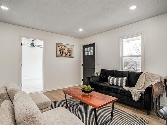 Spacious, totally remodeled ranch in Beverly Hills subdivision. This 3 bed, 2 bath features all new interior and exterior paint, new flooring, 2 new bathrooms, totally new kitchen, all new light fixtures, new windows and large fenced-in yard with 2 sheds. New kitchen has all new cabinets, new quartz countertops, new modern backsplash, peninsula with space for barstools and new stainless steel appliances that all stay. Primary suite has beautiful wainscoted accent wall, large closet and full en suite bath with coordinating blue tile accents. Main level has nice open concept living areas that are perfect for a family or people who like to entertain with kitchen overlooking dining room and living room. Plus home overlooks small neighborhood park, has 1 car garage with oversized driveway and extra storage space behind garage. Only minutes from shopping and restaurants of Noland Rd and multiple highways this is a perfect family home and a great value with so many updates- come become a part of the Beverly Hills community today!