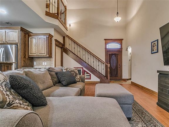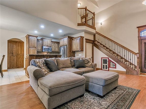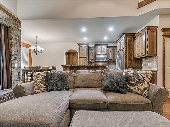 Tons of room to spread out in this True 5 bedroom house with an office that has a closest and can easily act as a 6th bedroom. All bedrooms are all good sized. This open living concept is amazing! The kitchen features granite countertops , stainless steel appliances and great storage . The master suite holds a stand alone shower, whirlpool tub, Austrian closest, and a door to escape to the large back yard. The back yard has a fire pit and a covered patio to set and enjoy the Oklahoma weather. The upstairs area has 2 bedrooms with a jack and jill bathroom and window seats in the bedrooms. The 3 car garage holds a 10-12 person shelter. This is a great house !