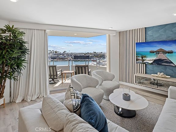 Towers, this fully renovated condo captures panoramic views of Newport Harbor, Lido Village, and the ocean