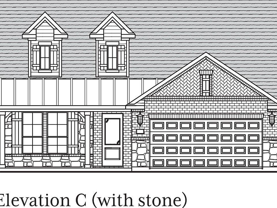 This beautiful one-story home features a vaulted ceiling with striking interior faux beams in the family room, creating a warm and inviting space. The master bedroom includes a charming bay window and a spa-like bath with an oversized shower. Luxury vinyl plank flooring runs throughout the main living areas, adding both style and durability. The kitchen is equipped with stainless steel appliances, a gas cooktop, a double-wall oven, and elegant finishes throughout. An upgraded 8' front door with textured glass and a full irrigation system completes this thoughtfully designed home