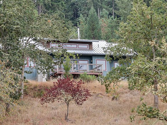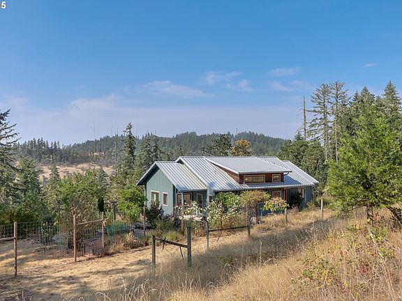 Welcome to Lavender Hill Sanctuary, a Modern Craftsman retreat built in 2014 by Rainbow Valley Construction. Set on over 30 rolling acres in South Eugene, this home highlights sustainable design, quality craftsmanship, and thoughtful accessibility. Interior finishes include bamboo floors, tile in the bathrooms, and durable linseed-based Marmoleum flooring in the kitchen and laundry, along with aluminum-clad casement windows. The one-level layout offers easy-flow spaces, a curbless shower, a walk-in soaking tub, and a well-designed kitchen. Guided by a Forest Stewardship Plan and permaculture design, the land is alive with lavender, fruit trees, grapevines, and diverse perennial plantings. Deer-height fencing surrounds raised beds with asparagus, artichokes, and more. As part of the permaculture approach, a rainwater catchment system collects from the metal roof and gutters, providing about 1,000 gallons of storage to help sustain the gardens. A seasonal water feature comes alive with frogs and wildlife in the fall. At roughly 1,000 feet in elevation, the property offers territorial views, meandering trails, and a southwest corner with a beautiful vantage point of Spencer Butte. The property also includes partial perimeter fencing and a 4-stall shed row barn. Lavender Hill Sanctuary offers peace, privacy, and a lifestyle in harmony with nature, all just minutes from town.