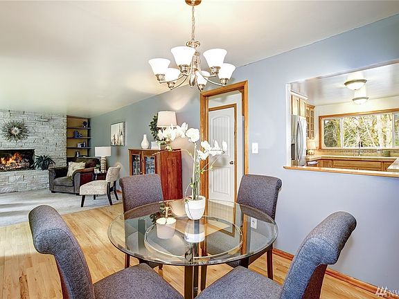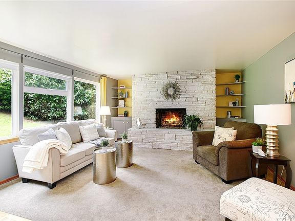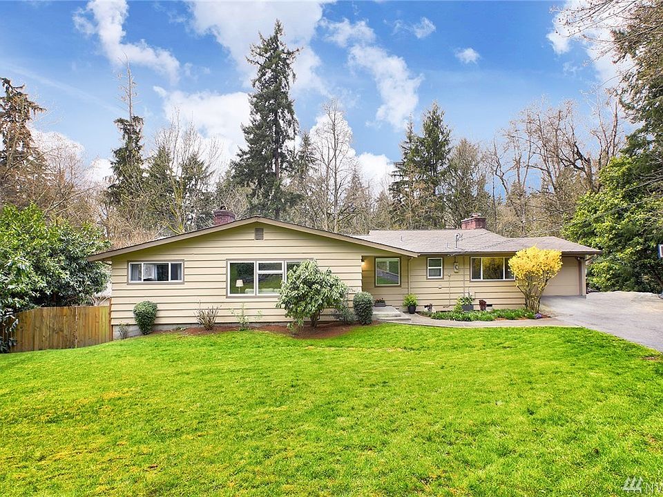 Rare opportunity for desirable rambler w/bsmt on secluded shy acre. Designer touches thru-out incl kitchen w/ gas cooktop & custom cabs overlooking inviting great rm w/beamed ceiling, brick f/p & covered patio. Formal living & dining rms, cozy office, 3 bdrms & oversized laundry rm complete the main floor. Downstairs incl huge rec room, bdrm with f/p, an extra room that could be a MIL w/outside entrance, & bonus area w/French doors to back yard w/ playhouse & cabana. Just min. from I-5 & shop'g.