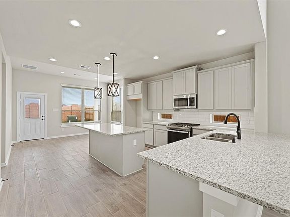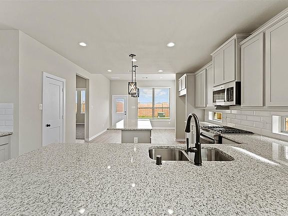 The Portland is a 2 story / 4 bedroom / 2.5 baths / Study/ Game Room / 2 car attached garage. Upgrades to the home include:GE stainless steel appliances including dishwasher, range, and microwave. This gorgeous home has Grey (Stone) cabinets throughout whole home with modern black lighting fixtures and black plumbing fixtures throughout whole home. The first floor of the home has beautiful wood look tile except the bedrooms. The kitchen has White Shore granite wit hMoorgate Pendant Lights in the kitchen. The Home has wood balusters lining the stairs, and an irrigation system for the yard. Home will have an electronic door keypad.