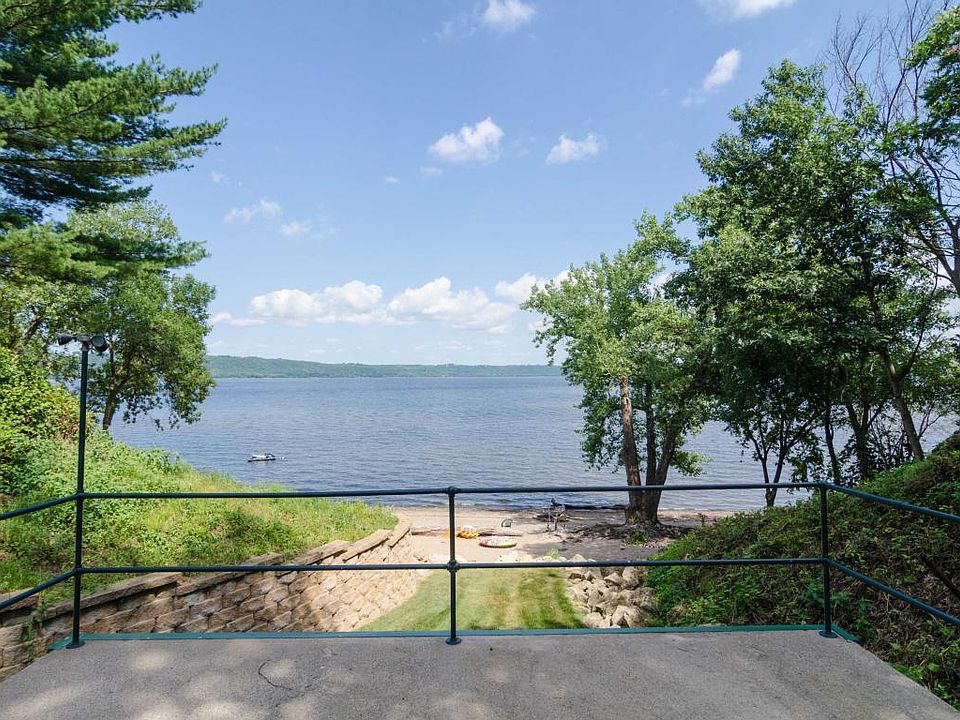 This property is the midcentury jewel of Wacouta Beach. Private 1.63 acre lot with panoramic views and gradual elevation to 221 foot beach on Lake Pepin. Main house has open floor plan with new cooks kitchen. Guest house with Living Room, Bedroom, kitchenette, and bath.