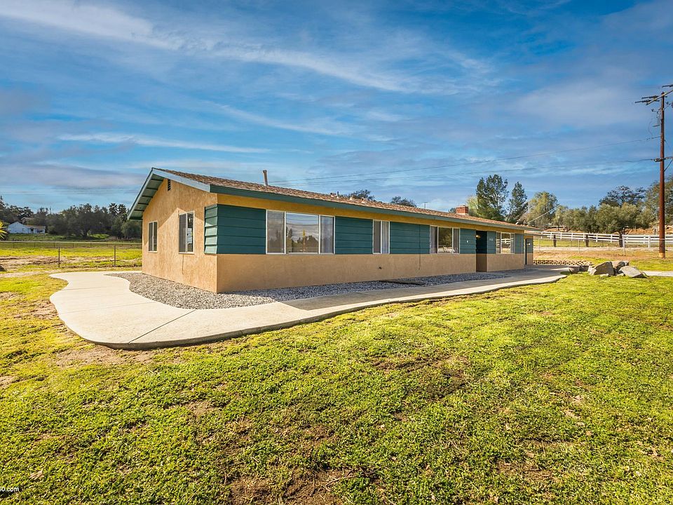 Ranch style house in excellent condition. 5 level fenced acres of land; animals will be considered. Close to HWY 67 and Ramona, CA. Newly painted; SUPER clean; well maintained; all rooms have ceiling fans, with lighting. Fireplace. Forced air heating and air conditioning system. City water. Septic system. Propane. Kitchen and bathroom cabinets newly painted with granite tops. Stainless appliances: French door refrigerator; gas range; dishwasher; range hood. Recessed lighting in kitchen. Tile flooring throughout. Vertical blinds throughout. Washer/dryer plumbed in attached garage. Oversized 2 car garage. Wide sidewalks around house with patio in back. Beautiful views of Cuyamaca and Palomar mountains. NO SMOKING. On propane for heating and cooking. Pets and/or large animals (such as horses) will be considered upon discussion. Lots of parking on the 5 acres. Gravel driveway and parking. Application to be completed first on Zillow; then tour of house. Credit score of 700+. 2 year lease