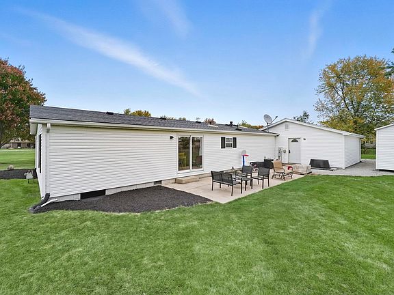 Welcome to peaceful country living with convenience close by! This refreshed 3-bedroom, 2-bath home sits on 1.3 acres just minutes from Tri-Lakes and local restaurants. Inside, you’ll find spacious rooms, a split-bedroom floor plan, and a large kitchen loaded with cabinet space and all appliances included—plus the washer and dryer! The dining area overlooks the back patio, perfect for summer grilling and quiet evenings outdoors. The interior is super cozy and welcoming with neutral colors, newer paint, and laminate floors throughout. The primary suite offers its own private bath & walk-in closet, giving you a comfortable ensuite setup. Both bathrooms have been updated with newer vanities, lighting, and toilets for a clean, modern feel. Major components that have been updated within the last 5–10 years are the gas forced air furnace, central air, water heater & dimensional shingle roof. The home features a one-year-old Culligan water softener unit as well. The insulated 2-car attached garage adds comfort and practicality, and a newer 12x16 shed (just 3 years old) provides additional storage. Connected to Tri-Lakes sewer and featuring its own well, this home offers low-maintenance living with all the big-ticket items already done—so you can simply move in and enjoy!