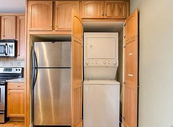 TOP FLOOR 2-BR condo for rent in the Museum District. 1 large BR, 1 smaller BR (about half the size of the larger BR). Walk to the Fan, VMFA, Scott's Addition and Carytown! Hardwood floors throughout condo! Stacked washer/dryer with large capacity neatly tucked away next to kitchen. Spacious living room. Back porch entrance. Optional: Crate & Barrel couch with extra-deep seats, comes with condo, if desired. Gray Lounge II Sofa 93". Parking pass for private off-street alley spaces. Granite countertop kitchen. Carpeted building hallways keep building noise low. New refrigerator/freezer with fridge on top. Ceiling fans in bedrooms. Comes with storage unit in basement with key to lock. Professionally cleaned & ready for move-in. Lots of natural light with eight large windows providing beautiful views - which set this rental apart. Tenant pays electric and internet. Landlord pays water, sewer, COA fees.