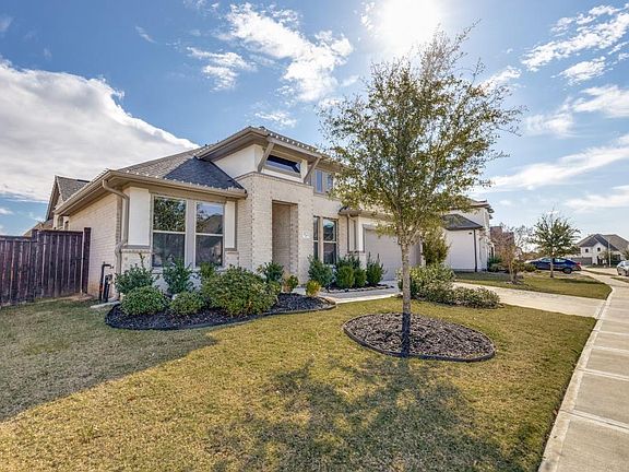 Welcome to this exquisite 4 bedroom-4 bathroom residence in Cane Island on a prime corner lot. High ceilings & expansive large windows deliver exceptional light throughout the home. The chef's island kitchen is a masterpiece of luxury: quartz countertops, gold hardware, and eye-catching gold pendant lighting over the colossal island. It boasts a gas range, double oven, and premium stainless steel appliances, all complementing the durable, elegant quartz used throughout the property. Work productivity is elevated in the private office, distinguished by its stunning vaulted ceiling. The primary ensuite is a dedicated spa retreat: featuring dual sink vanities, a deep porcelain soaking tub, and a vast, glass-enclosed walk-in shower. Additional high-value amenities include a dedicated in-home gym space. Enjoy outdoor living with the relaxing covered patio overlooking the generous, sizeable backyard. This home perfectly blends luxury, light, and modern convenience in a sought-after location.