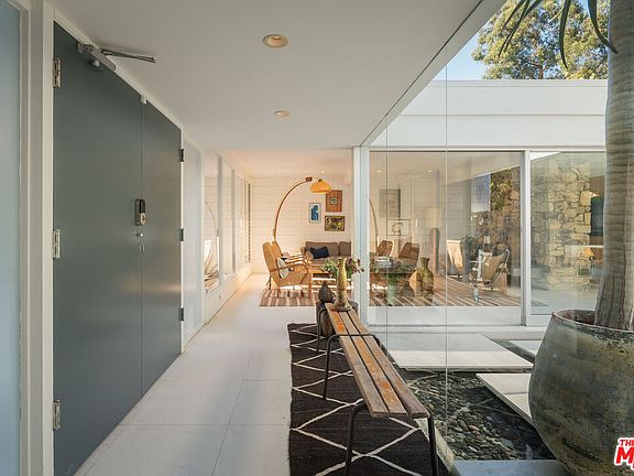 Designed by acclaimed architect Edward H. Fickett, F.A.I.A., this 2,510 sq ft mid-century modern gem is tucked within Nichols Canyon's renowned architectural enclave. Built in 1959 and thoughtfully expanded in 1966, the 4-bedroom, 4-bath home reflects Fickett's signature California modernism with open living spaces, clean lines, and seamless indoor-outdoor flow. A dramatic central glass atrium with a tranquil water feature fills the interiors with natural light, while floor-to-ceiling glass doors open to the pool, spa, and spacious entertaining deck. The primary suite offers direct pool access, a modernized bath, and a walk-through closet. Three additional bedrooms, two with private yard access, complete this rare architectural residence that blends timeless design with modern comfort in one of Los Angeles' most desirable canyon settings.