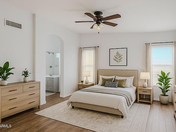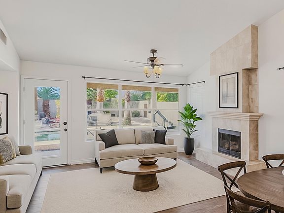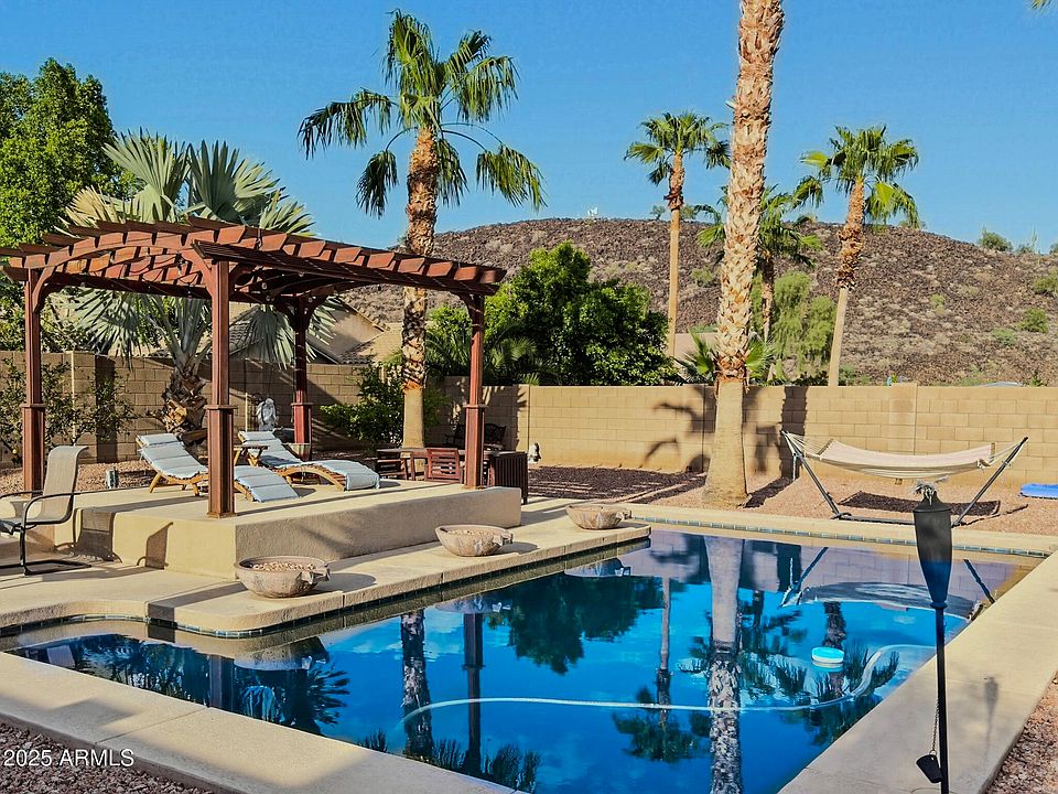 Charming 3 bed, 2 bath home surrounded by mountains and beautiful desert preserves. 2-car garage, wood-burning fireplace, vaulted ceilings, kitchen with ample cabinetry/counter space, breakfast bar, and recessed lighting. Inside the master suite you will find a full bath with his and her sinks and walk-in closet. Beautiful backyard oasis consists of a covered patio, mountain views, Ramada, and a refreshing pool with fountains ready for summer! Solar panels are owned outright. Close to shopping and dining at Norterra, easy access to I-17 freeway, and close to many hiking trails and pickleball and tennis courts.